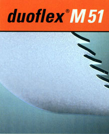 duoflex® M51 - специальное биметаллическое полотно с более высокой стойкостью и производительностью по сравнению с М42. Предназначено для резки труднообрабатываемых материалов больших сечений. Твердость зуба – 68 НRc, что позволяет резать высоколегированную, инструментальную и специальную нержавеющую сталь.
