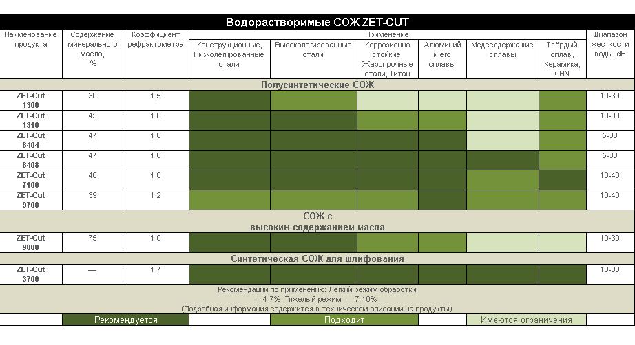 Рекомендуемая концентрация для средних и тяжелых режимов обработки:Операция Материал Рабочая эмульсия Корректировка